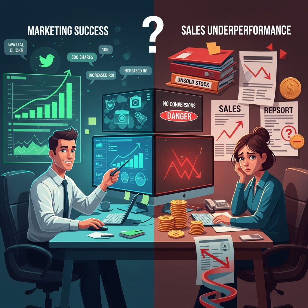 U današnjem digitalnom svetu, marketing deluje kao čarobni štapić – pokreće oglase, puni društvene mreže i privlači stotine klikova na sajtove. Ali, dok oglasi beleže uspeh, prodajni tim – ili vlasnik biznisa – češe se po glavi i pita se: “Gde su moji kupci? Kako to da imamo klikove, ali nemamo prodaju?”